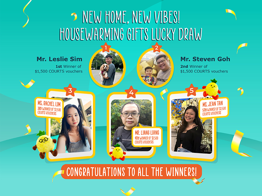 We’d like to extend our heartfelt thanks to everyone who took part in our New Homeowners Housewarming Gifts Lucky Draw! Your participation made it a memorable event, and congratulations to our five lucky winners!